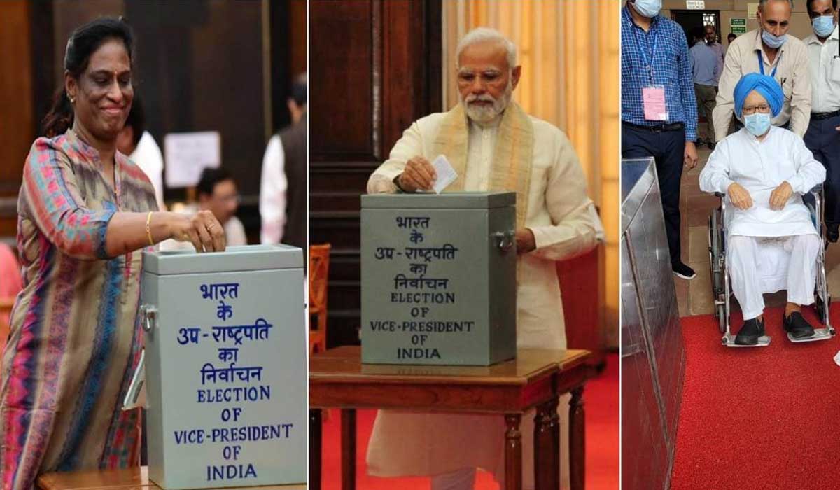 नई दिल्ली : उपराष्ट्रपति पद के लिए संसद भवन में वोटिंग जारी है। पीएम मोदी भी उपराष्ट्रपति पद के लिए वोटिंग करने संसद भवन पहुंचे। इस दौरान प्रधानमंत्री ने संसद भवन में मतदान किया इसके अलावा केंद्रीय मंत्री जितेंद्र सिंह और केंद्रीय मंत्री अश्विनी वैष्णव ने संसद में मतदान किया। वहीं पूर्व प्रधानमंत्री और उडनपरी पी.टी.उषा ने भी मतदान किया।