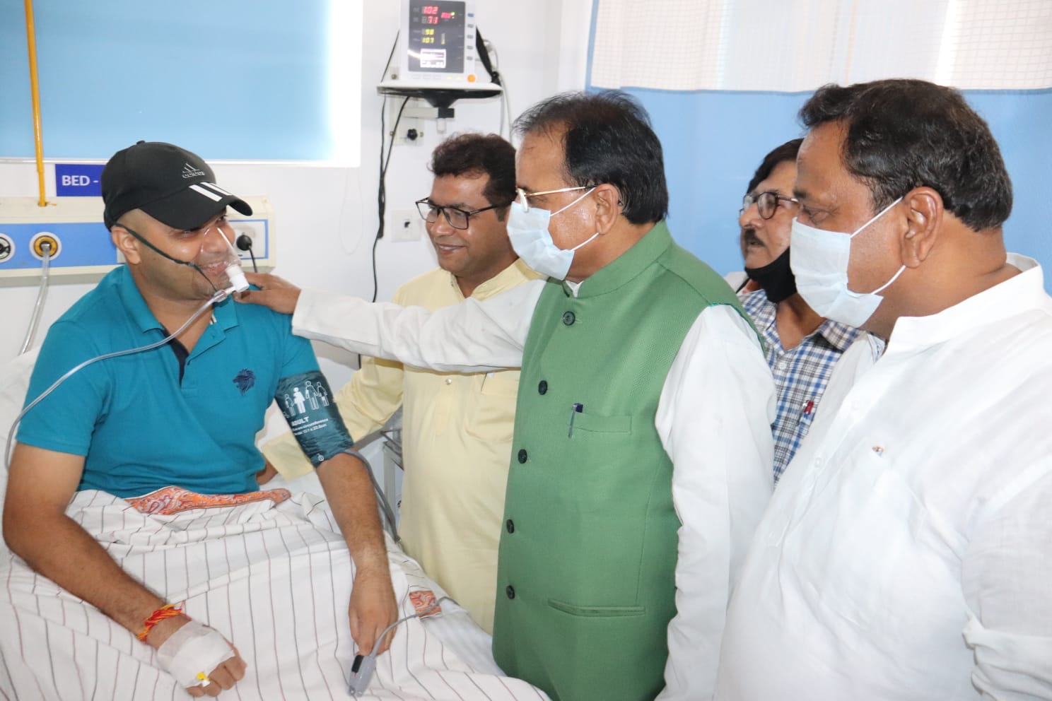 रुद्रपुर : केन्द्रीय रक्षा एवं पर्यटन राज्यमंत्री अजय भट्ट ने बुद्धवार को जिला चिकित्सालय, मेडिसिटी हाॅस्पिटल, चीमा हाॅस्पिटल पहुॅचकर गत दिवस ट्रांजिट कैम्प क्षेत्र के आजाद नगर मोहल्ले में कबाड़ की दुकान रासायनिक गैस रिसाव से पीड़ित व्यक्तियों तथा सिरसा मोड़ के पास हुई ट्रेक्टर-ट्राली वाहन दुर्घटना में घायल व्यक्तियों को दिये जा रहे उपचार व स्थिति की जानकारी ली तथा प्रभावित व्यक्तियों का हाल-चाल जाना।