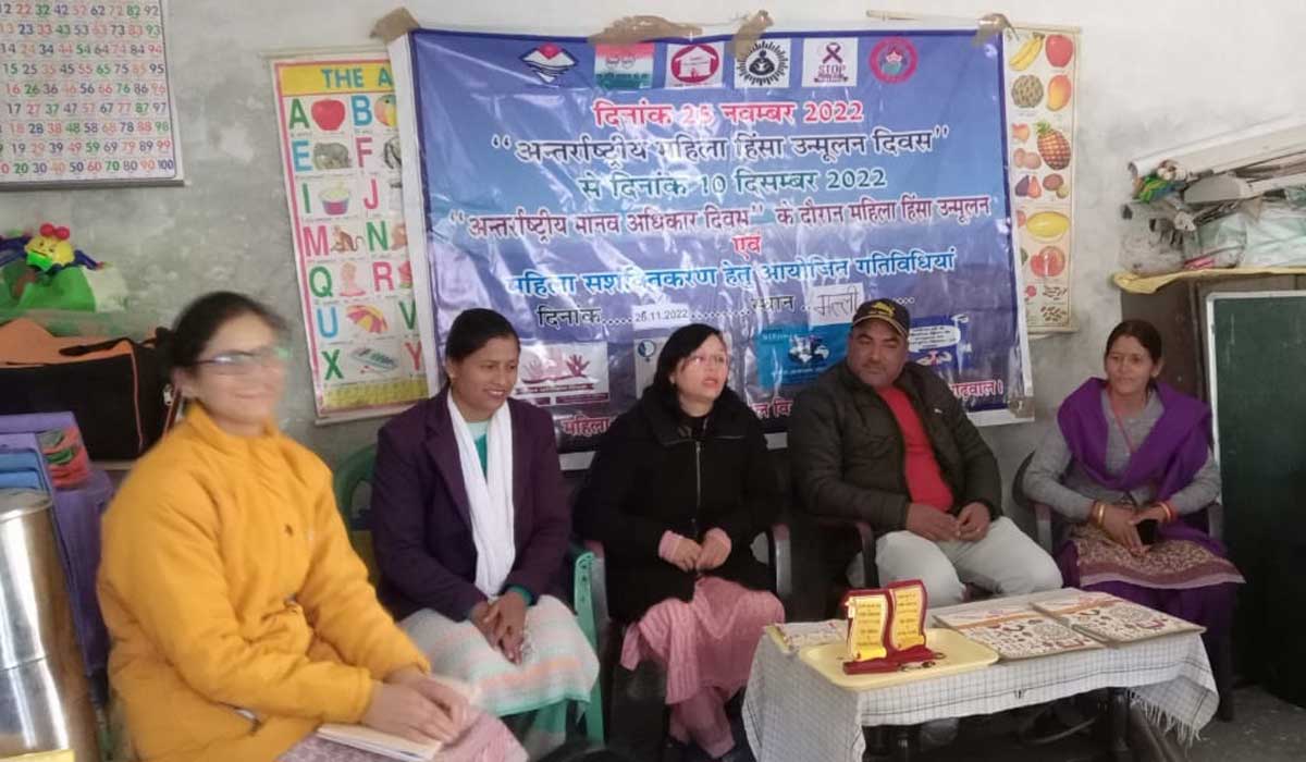 इसके अलावा सुपरवाइजर मनोरमा चौहान ने विभागीय योजना से संबंधित समस्याओं को सुनकर उन समस्याओं को सुलझाया तथा जिला समन्वयक मेहरूनिशा द्वारा गौरा शक्ति एप महिलाओं के फोन में डाउनलोड कर उसकी जानकारी दी। इस दौरान कार्यक्रम में महिला शक्ति केंद्र द्वारा महिलाओं के साथ टॉक शो किया गया जिसमें महिलाओं को विभागीय पोस्टर व कैलेंडर वितरित किये गये। इस अवसर पर ग्राम प्रधान उर्मिला देवी,जिला समन्वयक बिना रावत, आशा कार्यकत्री ज्योति देवी, वार्ड सदस्य करिश्मा देवी सहित अन्य उपस्थित थे।
