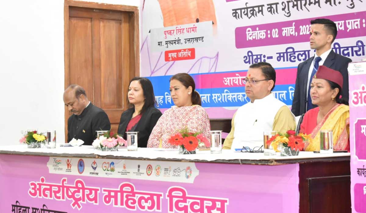 देहरादून : आज मुख्य सेवक सदन में अंतरराष्ट्रीय महिला दिवस के अवसर पर महिला सशक्तिकरण व सुरक्षा सप्ताह कार्यक्रम का शुभारंभ मुख्यमंत्री पुष्कर सिंह धामी व महिला सशक्तिकरण बाल विकास मंत्री रेखा आर्या द्वारा किया गया।महिला सशक्तिकरण विभाग की और से यह कार्यक्रम आगामी 8 मार्च तक चलेगा।इस अवसर पर मुख्यमंत्री पुष्कर सिंह धामी ने विभागीय ई पेपर “अपड़ि वाणी” जिसका धेय वाक्य है प्रदेश से परदेस तक का अनावरण किया साथ ही आत्मरक्षा पर बनी लघु प्रशिक्षण फ़िल्म का भी अनावरण किया गया। विभागीय ई पेपर के जरिये विभाग की योजनायों को जन-जन तक पहुंचाने का कार्य किया जाएगा।साथ ही इस दौरान विभिन्न क्षेत्रों में उत्कृष्ठ काम करने वाली महिलाओं को सम्मानित किया गया।