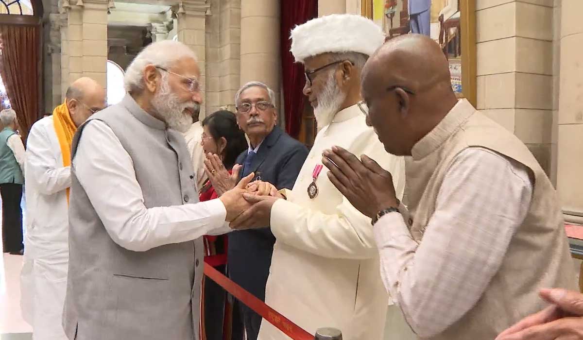 नई दिल्ली: बुधवार को पद्म पुरस्कार 2023 समारोह का आयोजन किया गया। इस दौरान कर्नाटक के बिदरी शिल्प कलाकार शाह रशीद अहमद कादरी को पद्म श्री पुरस्कार से सम्मानित किया गया। उन्हें ये पुरस्कार राष्ट्रपति द्रौपदी मुर्मू द्वारा प्रदान किया गया। पद्म श्री पुरस्कार से सम्मानित होने के बाद कादरी ने प्रधानमंत्री नरेंद्र मोदी से मुलाकात की। इस दौरान वह काफी भावुक नजर आए। कादरी ने प्रधानमंत्री का आभार व्यक्त करते हुए कहा कि भाजपा सरकार से उन्हें ये सम्मान मिलने की उम्मीद नहीं थी।