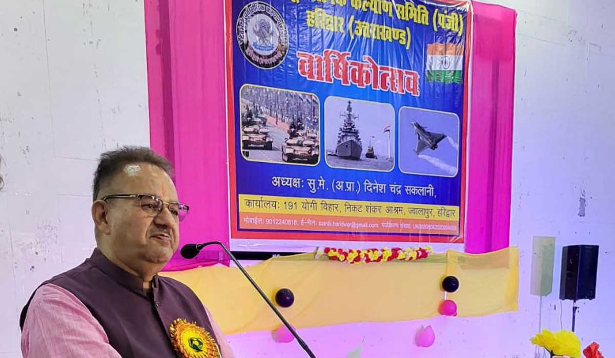 हरिद्वार : प्रदेश के सैनिक कल्याण मंत्री गणेश जोशी रविवार को हरिद्वार पहुंचे। जहां उन्होंने देवभूमि पूर्व सैनिक कल्याण समिति हरिद्वार के वार्षिकोत्सव कार्यक्रम में बतौर मुख्य अतिथि प्रतिभाग किया। कार्यक्रम में पूर्व सैनिकों द्वारा सैनिक कल्याण मंत्री गणेश जोशी का भव्य रूप से स्वागत किया गया। इस अवसर पर मंत्री गणेश जोशी ने वीर नारियों पूर्व सैनिकों को भी सम्मानित किया। कार्यक्रम में स्कूली बच्चों द्वारा दी गई प्रस्तुति के लिए बच्चो को भी पुरुस्कृत किया गया।अपने संबोधन के दौरान सैनिक कल्याण मंत्री गणेश जोशी ने कहा कि मैं सैनिकों के कार्यक्रमों में एक मंत्री के रूप में नहीं बल्कि एक पूर्व सैनिक होने के नाते आता हूं।