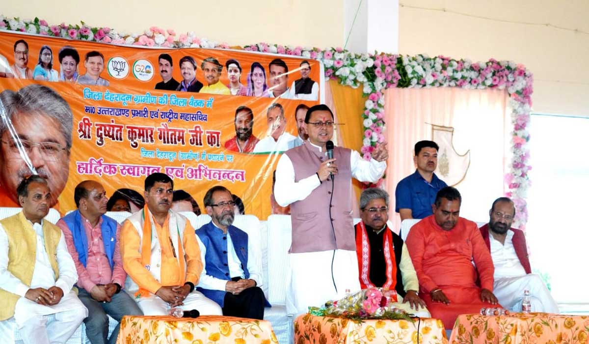 देहरादून : मुख्यमंत्री श्री पुष्कर सिंह धामी ने मंगलवार को सेलाकुई में आयोजित भाजपा जिला देहरादून ग्रामीण जिला बैठक में प्रतिभाग किया। उन्होंने सभी से पूरे मनोयोग से अपने दायित्वों के निर्वहन एवं राज्य सरकार द्वारा संचालित विभिन्न जन कल्याणकारी योजनाओं को जन-जन तक पहुंचाने का आह्वान किया।मुख्यमंत्री श्री पुष्कर सिंह धामी ने कहा कि प्रधानमंत्री श्री नरेन्द्र मोदी जी के नेतृत्व में आज भारत की सांस्कृतिक, धार्मिक, आध्यात्मिक एवं ऐतिहासिक पद्धतियों का समूचे विश्व में मान बढ़ रहा है। यह हमारा सौभाग्य है कि आज हम सभी प्रधानमंत्री जी के कुशल नेतृत्व में देश में किए जा रहे महान कार्यों के साक्षी हैं।