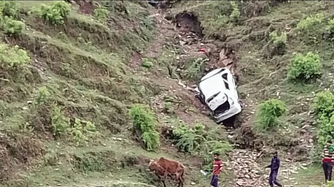 बेकाबू कार खाई में गिरी,एक की मौत,पांच घायल - Front Line News