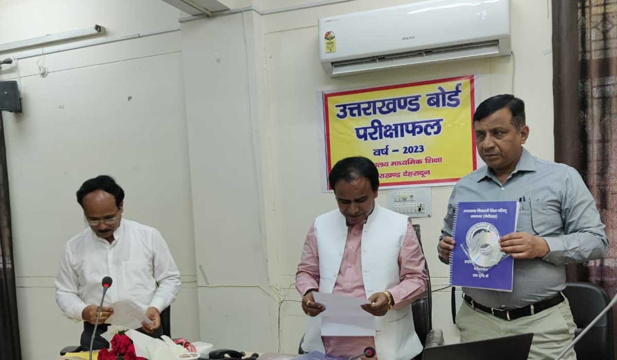 देहरादून : सूबे के विद्यालयी शिक्षा मंत्री डा. धन सिंह रावत की मौजूदगी में आज उत्तराखंड विद्यालयी शिक्षा परिषद की बोर्ड परीक्षाओं का परिणाम घोषित कर दिया गया है। परिषदीय परीक्षा-2023 के तहत हाईस्कूल का कुल परीक्षाफल 85.17 प्रतिशत जबकि इंटरमीडिएट का परीक्षा परिणाम 80.98 प्रतिशत रहा। विभागीय मंत्री डा. रावत ने बोर्ड परीक्षा में उत्तीर्ण सभी छात्र-छात्राओं को बधाई देते हुये उन्हें बेहतर भविष्य के लिये शुभकामनाएं दी। उन्होंने बोर्ड परीक्षाओं के सफल आयोजन और समय पर परीक्षाफल जारी करने के लिये विभागीय अधिकारियों एवं शिक्षकों की पीठ थपथपाई, साथ ही उन्होंने अगले वर्ष बोर्ड परीक्षा परिणाम 30 अप्रैल को घोषित करने के निर्देश अधिकारियों को दिये।