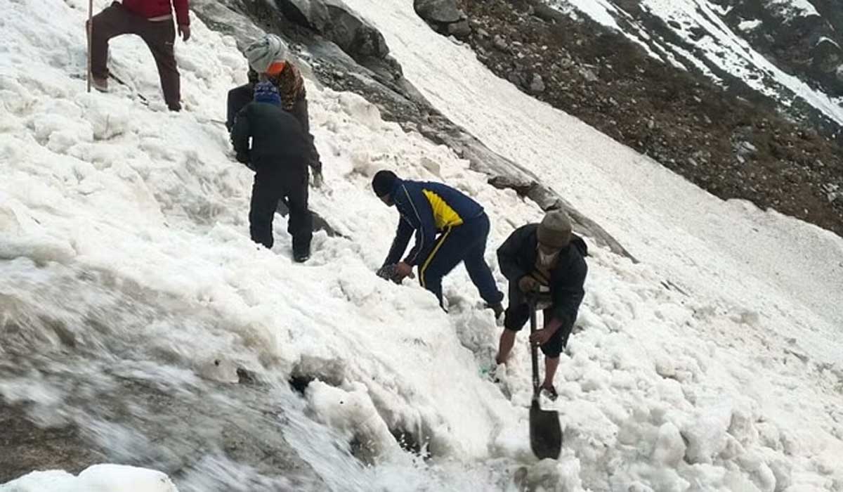 जोशमठ: हेमकुंड साहिब यात्रा मार्ग पर अटलाकुड़ी ग्लेशियर प्वाइंट के पास ग्लेशियर खिसकने से बर्फ में लापता हुई महिला की तलाश में आज फिर बचाव अभियान चलाया गया। सुबह करीब साढ़े बजे एसडीआरएफ ने बर्फ में दबा हुआ महिला यात्री का शव बरामद कर लिया है। वहीं, यात्रा मार्ग पर भारी बर्फ आने से रास्ता बंद हो गया है। जिससे यात्रा भी रोकी गई है। प्राप्त जानकारी के अनुसार रविवार शाम ग्लेशियर खिसकने से बर्फ की चपेट में छह श्रद्धालु आ गए थे। जिसमें से एक महिला श्रद्धालु अमृतसर निवासी 37 वर्षीय कमलजीत कौर लापता हो गई थी।