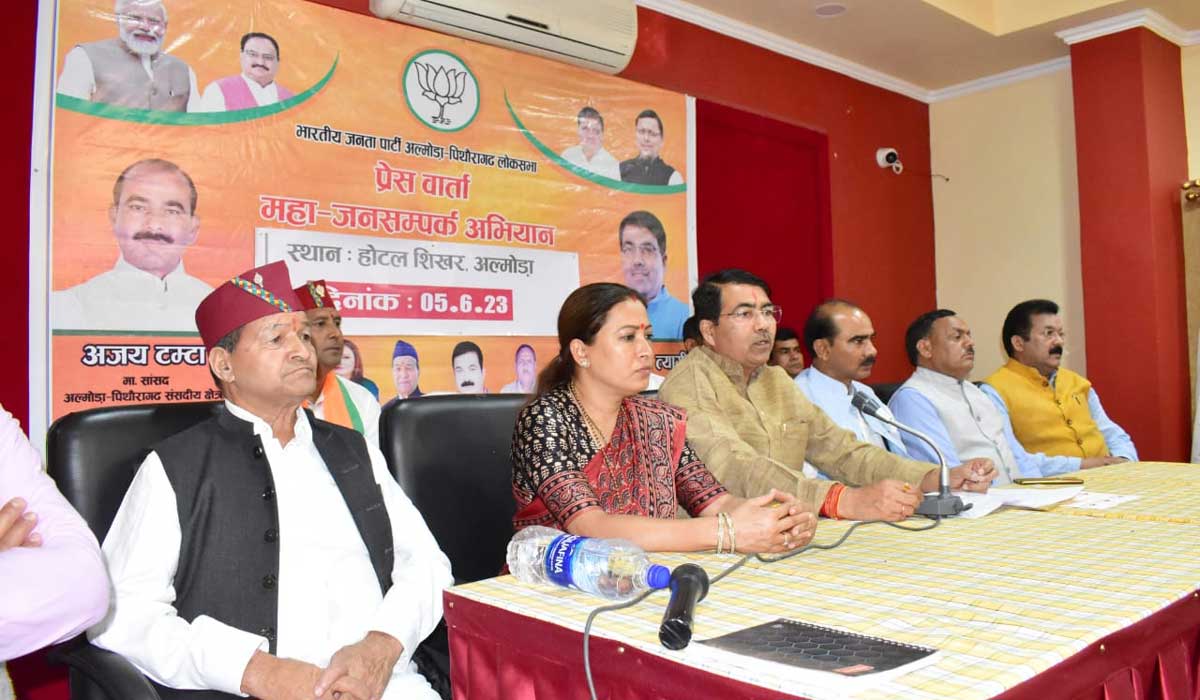 अल्मोड़ा : आज प्रदेश की कैबिनेट मंत्री रेखा आर्या ने अल्मोड़ा स्थित एक निजी होटल में मोदी सरकार के सफलतम 9 वर्ष पूर्ण होने के उपलक्ष्य पर भाजपा के महाजनसंपर्क अभियान के तहत आयोजित ‘मीडिया संवाद’ कार्यक्रम में शिरकत की जहां उन्होंने पत्रकारो के साथ संवाद किया और केन्द्र सरकार की उपलब्धियां गिनाईं। कैबिनेट मंत्री ने कहा कि प्रधानमंत्री नरेन्द्र मोदी के कुशल नेतृत्व में सेवा, सुशासन और गरीब कल्याण को समर्पित मोदी सरकार के सफलतम 9 वर्ष पूर्ण होने के उपलक्ष्य पर देशभर में भाजपा के महाजनसंपर्क अभियान के तहत कार्यक्रमो का आयोजन किया जा रहा है और जनता के साथ सरकार की विभिन्न जनकल्याणकारी योजनाओं पर विस्तारपूर्वक चर्चा की जा रही है।