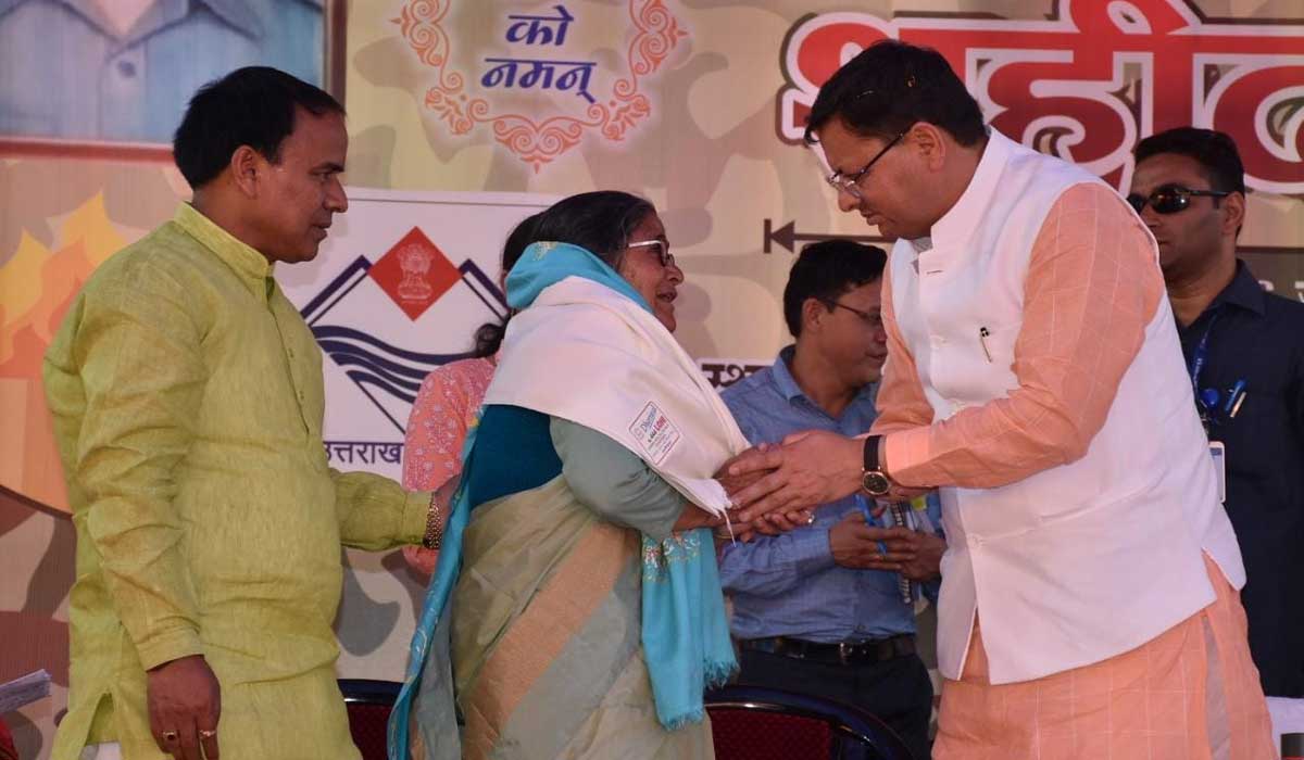 देहरादून : मुख्यमंत्री पुष्कर सिंह धामी ने मंगलवार को चेपडो थराली में अशोक चक्र विजेता शहीद भवानी दत्त जोशी की स्मृति में आयोजित शौर्य महोत्सव का शुभारम्भ किया। मुख्यमंत्री ने शहीद भवानी दत्त जोशी के स्मारक पर पुष्प चक्र अर्पित कर उन्हें भावपूर्ण श्रद्धांजलि अर्पित की।इस अवसर पर मुख्यमंत्री ने 16.50 करोड़ की विभिन्न विकास योजनाओं का लोकार्पण व शिलान्यास किया। उन्होंने हर वर्ष शौर्य महोत्सव मेला आयोजित किये जाने, शौर्य महोत्सव को राजकीय मेला घोषित करने के साथ ही कुलसारी मैदान में नदी कटाव हेतू बाढ सुरक्षा कार्य किए जाने, नारायणबगड व नन्दानगर में पार्किग, थराली अस्पताल का उच्चीकरण किये जाने, नन्दानगर में उपनिबन्धक की स्वीकृति, नारायणबगड व देवाल को आने वाले समय में नगर पंचायत बनाये जाने तथा नन्दा राज जात को भव्य बनाने के लिए विस्तृत योजना बनाये जाने की घोषणा की।