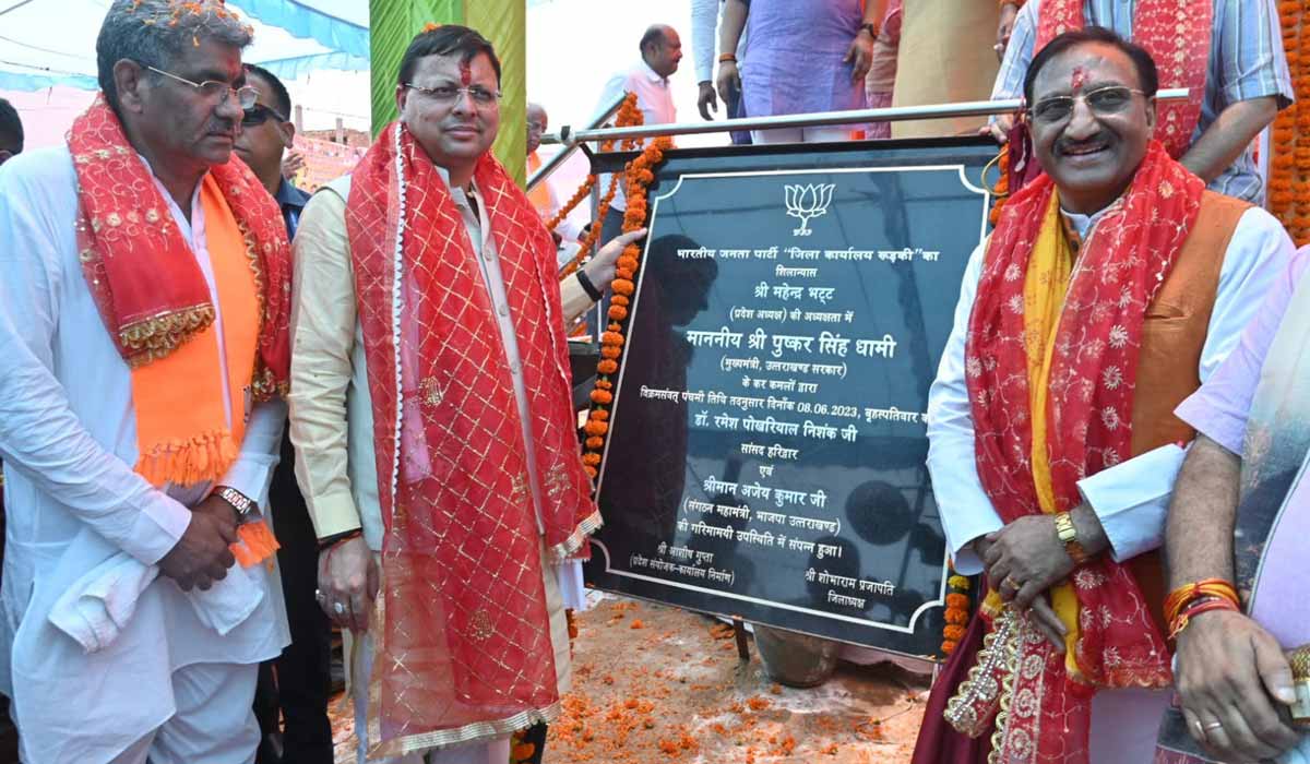 देहरादून : मुख्यमंत्री श्री पुष्कर सिंह धामी ने गुरूवार को रूड़की में भाजपा कार्यालय के भूमि पूजन कार्यक्रम में प्रतिभाग किया। इस अवसर पर उन्होंने रूड़की क्षेत्र के लिए तीन घोषणाएं की। मुख्यमंत्री ने इस अवसर पर घोषणा की कि रूड़की के पठानपुरा से आदर्श नगर पैट्रोल पम्प तक आर.सी.सी. नाला का निर्माण कार्य किया जाएगा। रुड़की के मेन हाईवे से कान्हापुर तक बी.एम. एस.डी.बी.सी. द्वारा सड़क निर्माण कार्य कराया जाएगा। रुड़की के सोलानीपुरम की आन्तरिक सड़कों का इंटरलॉकिंग टाइल्स द्वारा सड़क व नाली निर्माण का कार्य किया जाएगा।मुख्यमंत्री श्री पुष्कर सिंह धामी ने इस अवसर पर अपने संबोधन में कहा कि बाबा केदार एवं भगवान बद्रीविशाल के आशीर्वाद और सभी कार्यकर्ताओं की सेवा, समर्पण और पार्टी के प्रति सच्ची निष्ठा के बल पर रुड़की में पार्टी कार्यालय का भूमि पूजन संपन्न हुआ है। मुख्यमंत्री ने स्व. श्यामा प्रसाद मुखर्जी का स्मरण करते हुए कहा कि जनसंघ के रूप में उन्होंने ऐसे राष्ट्रवादी संगठन की नींव रखी जो आज भारतीय जनता पार्टी के रूप में सम्पूर्ण विश्व का सबसे बड़ी राजनीतिक पार्टी बन चुकी है। उन्होंने स्व. दीनदयाल उपाध्याय का स्मरण कर कहा कि दीनदयाल उपाध्याय जी ने अपनी आदर्श छवि एवं विशिष्ट बौद्धिकता से सम्पूर्ण विश्व में भारत के गौरव को बढ़ाने का कार्य किया। इस अवसर पर मुख्यमंत्री ने भारत रत्न स्व. श्री अटल बिहारी वाजपेयी जी का स्मरण भी करते हुए कि अटल जी के प्रधानमंत्रित्व काल में ही उत्तराखण्ड अलग राज्य बना।