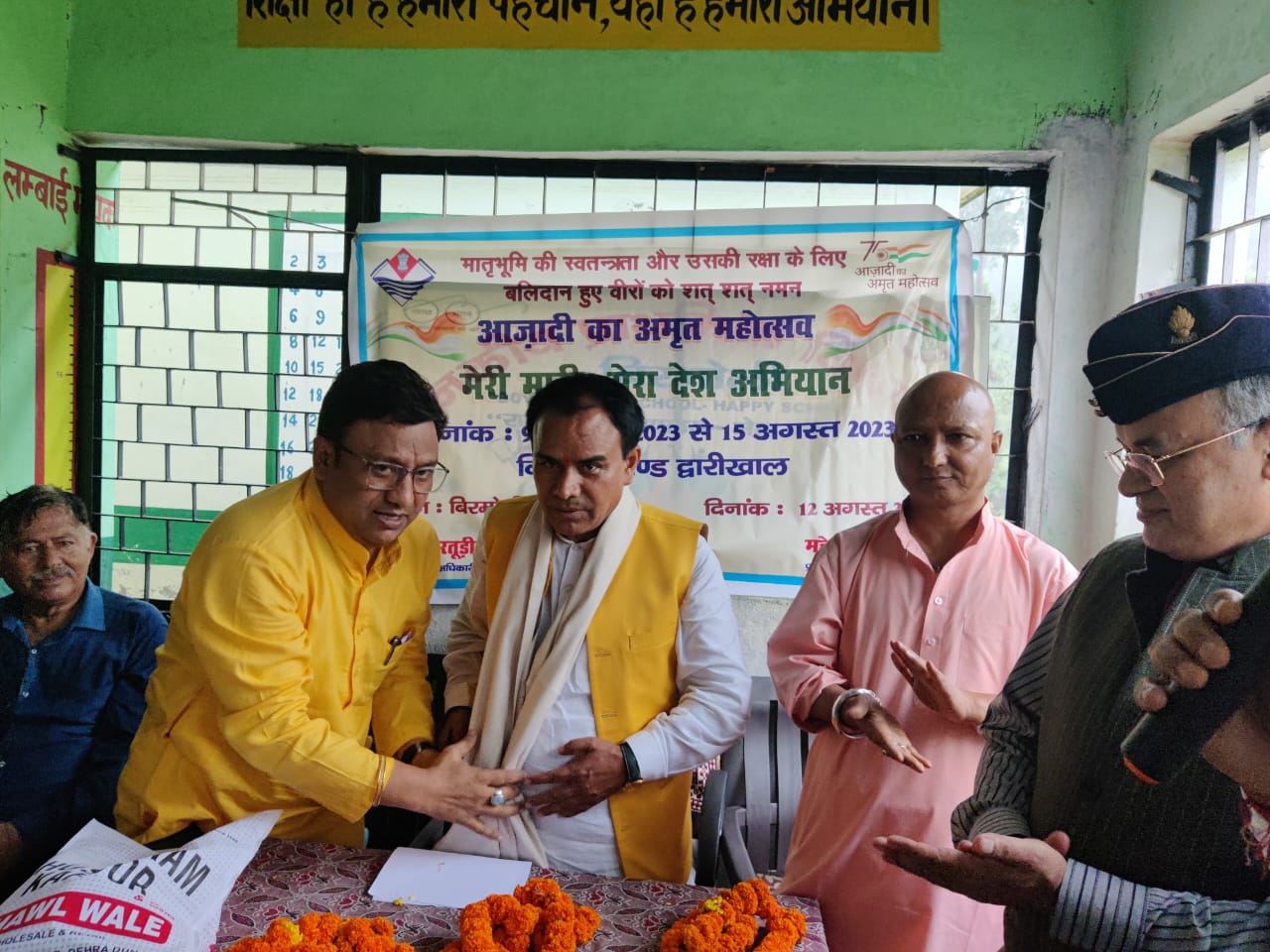 कैबिनेट मंत्री ने कहा कि ‘मेरी माटी मेरा देश’ अभियान के तहत शहीदों एवं स्वतंत्रता सेनानियों के गांव पहुंचकर उनके परिजनों से मिलकर वह वीरों का वंदन कर उन्हें श्रद्धांजलि हेतु प्रदेश के कई जनपदों का भ्रमण करेंगे। और इस दौरान विभिन्न विद्यालयों में आयोजित तिरंगा यात्रा में शामिल होने के साथ ही अमर शहीदों की स्मृति में ग्राम पंचायतों में स्मारक पट्टिका स्थापित कर पंच प्रण की शपथ कार्यक्रम में शिकरत करेंगे। इस मौके पर लैंसडाउन के विधायक दलीप रावत, द्वारीखाल के ब्लाक प्रमुख महेंद्र राणा समेत कई गणमान्य लोग मौजूद रहे।