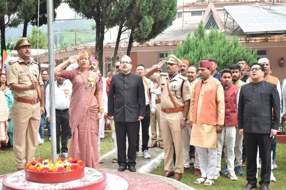 चंपावत: आज 77 वे स्वतंत्रता दिवस के अवसर पर जनपद प्रभारी व कैबिनेट मंत्री रेखा आर्या कलेक्ट्रेट पहुंची जहां उन्होंने “आजादी का अमृत महोत्सव” स्वतंत्रता दिवस के शुभ अवसर पर कलेक्ट्रट परिसर में ध्वजारोहण कर वीर शहीदों को नमन व वंदन किया।इस दौरान सभागार में स्कूली छात्राओं ने विभिन्न सांस्कृतिक प्रस्तुतियां प्रस्तुत की। इस दौरान प्रभारी मंत्री ने स्वतंत्रता दिवस के उपलक्ष्य में देश को स्वतंत्रता दिलाने वाले वीर स्वतंत्रता संग्राम सेनानियों के परिजनों को सम्मानित भी किया।साथ ही इस स्वतंत्रता दिवस के उपलक्ष्य में कलेक्ट्रेट परिसर में वृक्षारोपण भी किया।