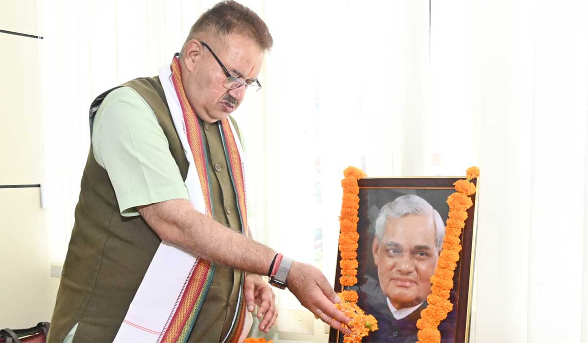 देहरादून : काबीना मंत्री गणेश जोशी ने बुधवार को न्यू कैंट रोड़ स्थित कैंप कार्यालय में पूर्व प्रधानमंत्री ‘भारत रत्न’ श्रद्धेय अटल बिहारी वाजपेयी की पांचवीं पुण्यतिथि पर आयोजित श्रद्धांजलि एवं गोष्ठी कार्यक्रम में प्रतिभाग कर उन्हे पुष्प अर्पित कर भावपूर्ण श्रद्धांजलि अर्पित की।इस अवसर पर मंत्री गणेश जोशी ने श्रद्धेय अटल बिहारी वाजपेयी की 5वीं पुण्यतिथि पर उन्हें भावपूर्ण नमन करते हुए श्रद्धांजलि अर्पित की।