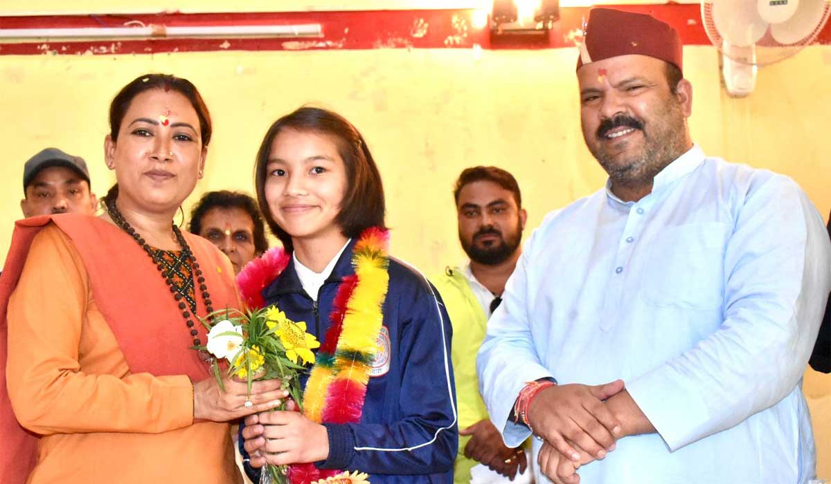 कहा कि यह खुशी का विषय है कि पिथौरागढ़ जनपद के खिलाड़ी राज्य का नाम लगातार रोशन करने का काम कर रहे हैं।इस अवसर पर जिलाध्यक्ष श्री गिरीश जोशी जी,मंडल अध्यक्ष श्री डॉ दुर्गा प्रसाद जी,मंडल प्रभारी श्री दीपक चुफाल जी,प्रदेश कार्यकारिणी सदस्य श्री रुद्र पंडा जी,श्री गोकर्ण मर्तोलिया जी,वरिष्ठ कार्यकर्ती श्रीमती बसंती जी,श्री प्रदीप रावत जी,श्रीमती मुन्नी देवी मंडल जी,श्रीमती बसंती जोशी जी,श्री मनोहर दरियाल जी सहित पार्टी कार्यकर्ता उपस्थित रहे।