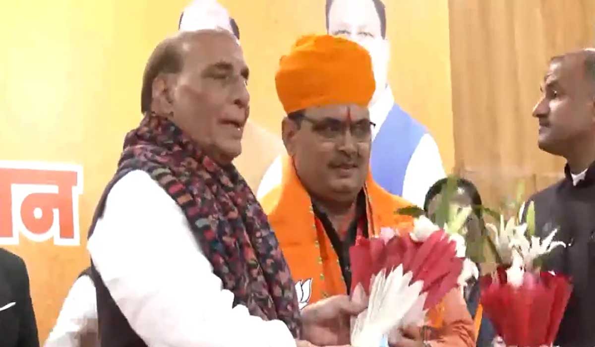 राजस्थान के मुख्यमंत्री के रूप में भजन लाल शर्मा के नाम की घोषणा भाजपा की वसुंधरा राजे ने की, जिनका नाम भी शीर्ष पद के दावेदारों में था। भाजपा आलाकमान ने केंद्रीय मंत्री राजनाथ सिंह, विनोद तावड़े और सरोज पांडेय को राजस्थान का पर्यवेक्षक बनाया था।