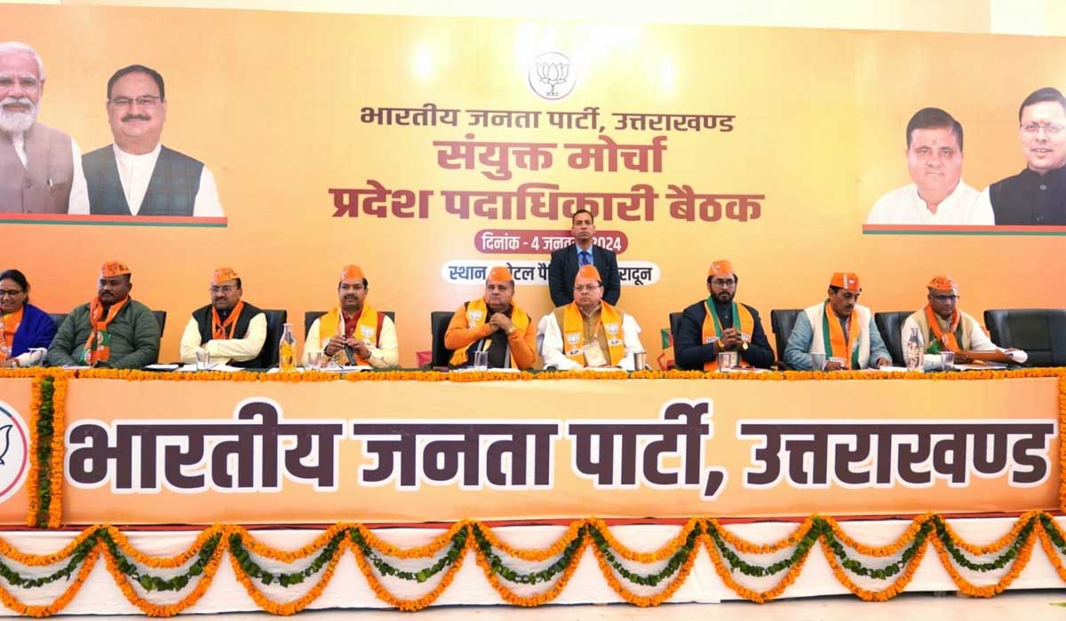 इस दौरान मुख्यमंत्री धामी ने सभी मोर्चा पदाधिकारियों को संबोधित करते हुए कहा, हम सभी सौभागधाली हैं कि 550 वर्षों के इंतजार के बाद प्रभु श्री राम अपने जन्मस्थान में विराज रहे हैं । साथ ही बेहद गौरव की बात है कि यह सब त्रेता युग के बाद पीएम मोदी के नेतृत्व देश में जारी राम राज में यह सब संभव हो रहा है । लिहाजा देश के विकास और सांस्कृतिक क्रांति के इस दौर में जनता का विश्वास भाजपा को मिलना तय है । प्रदेश में भी विपक्ष मुद्दाविहीन होकर अफवाह फैलाने की नीति पर काम कर रहा है। उनके पास जनता के पास जाने का नैतिक साहस नहीं है और झूठ फैलाने का काम कर रहा है । लिहाजा हमे जनता में जाकर भाजपा सरकारों के ट्रेक रिकॉर्ड को रखना है । साथ सरकार के कामों के साथ साथ विश्वास भी जगाना है कि शीघ्र ही यूसीसी, मूल निवास और सख्त भू कानून भी भाजपा सरकार में ही लेकर आएगी। सभी कार्यकर्ताओं को चुनावों के लिए पूरी तरह जुटना है और जीत के सभी सभी पुराने रिकॉर्ड ध्वस्त करने हैं ।