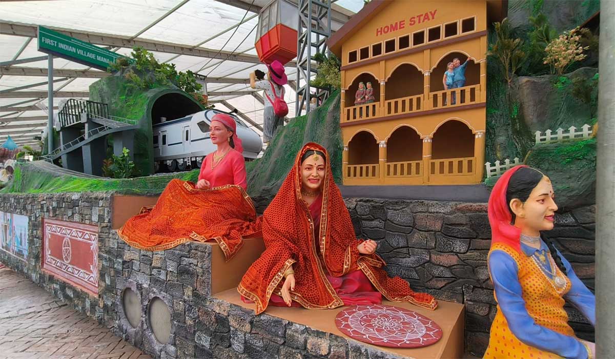 श्री चौहान ने आगे बताया कि वर्ष 2023 में भारत सरकार ने उत्तराखण्ड के पिथौरागढ़ जिले के सरमोली गांव को सर्वश्रेष्ठ पर्यटन गांव घोषित किया था। इसके अतिरिक्त लखपति दीदी योजना से राज्य की महिलाएं आत्मनिर्भर बन रही हैं। स्वयं सहायता समूह में कार्य करते हुए स्थानीय महिलाएं व सुन्दर पहाड़ों में सौर ऊर्जा और मोबाइल टावर को भी उकेरा गया है। ‘विकसित उत्तराखण्ड’ झांकी के अंतिम भाग में ऑल वेदर रोड़, ऋषिकेश-कर्णप्रयाग रेल परियोजना, रोपवे और भारत के प्रथम गांव माणा के लिए रोड़ कनेक्टिविटी को दर्शाया गया है। इन योजनाओं से उत्तराखण्ड में यात्रियों के लिए आवागमन की सुविधा में आमूल-चूल परिवर्तन हुआ है।
