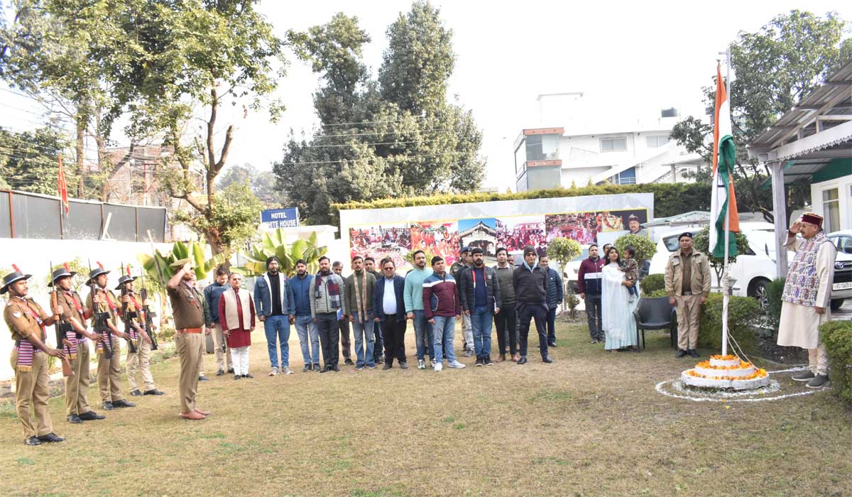 देहरादून : गणतंत्र दिवस के अवसर पर कैबिनेट मंत्री सतपाल महाराज ने सुभाष रोड़ स्थित अपने कैम्प कार्यालय परिसर में ध्वजारोहण किया। उन्होंने सभी को गणतंत्र दिवस की शुभकामनाएं दी।गणतंत्र दिवस के अवसर पर प्रदेश के कैबिनेट मंत्री सतपाल महाराज ने सुभाष रोड़ स्थित अपने कैम्प कार्यालय परिसर में अपने स्टाफ की उपस्थिति में ध्वजारोहण किया। उन्होंने सभी को गणतंत्र दिवस की शुभकामनाएं देते हुए सभी से गणतंत्र को मजबूत करने के साथ-साथ देश की एकता एवं अखंडता को बनाए रखने की भी अपील की।
