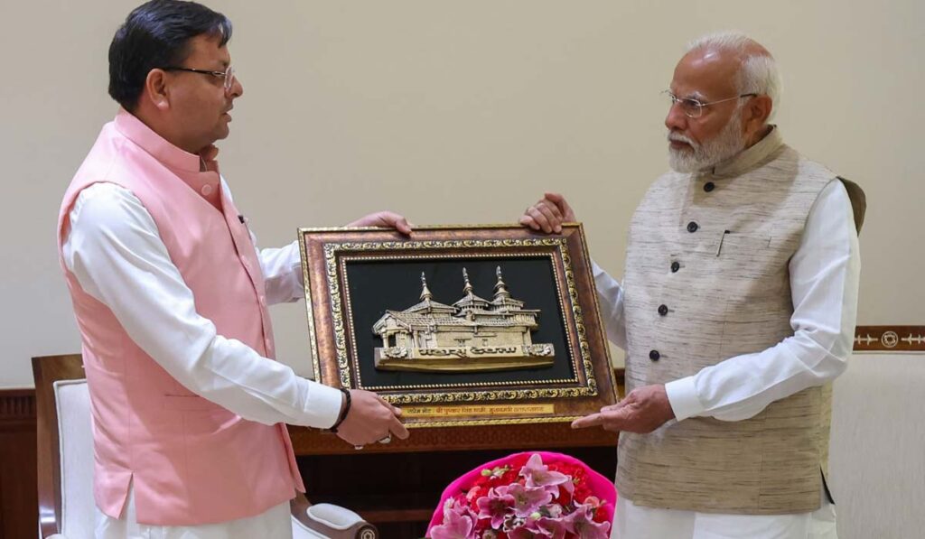 देहरादून : मुख्यमंत्री श्री पुष्कर सिंह धामी ने मंगलवार को नई दिल्ली में प्रधानमंत्री श्री नरेंद्र मोदी से भेंट कर उन्हें तीसरी बार देश के प्रधानमंत्री का दायित्व संभालने पर हार्दिक शुभकामनाएं दी। उन्होंने विश्वास व्यक्त किया कि प्रधानमंत्री श्री मोदी के कुशल नेतृत्व में देश समग्र विकास के नए आयाम प्राप्त कर सम्पूर्ण विश्व में सफलता के नए कीर्तिमान स्थापित करने में सफल होगा। मुख्यमंत्री ने इस अवसर पर प्रधानमंत्री श्री नरेंद्र मोदी को महासू मंदिर की प्रतिकृति भेंट की।प्रधानमंत्री श्री मोदी से भेंट के दौरान मुख्यमंत्री ने उन्हें राज्य के विकास से संबंधित विभिन्न विषयों की जानकारी दी। मुख्यमंत्री ने कहा कि उत्तराखण्ड राज्य के सामाजिक एवं आर्थिक विकास हेतु जल विद्युत परियोजनायें राज्य की सकल घरेलू उत्पाद (जीडीपी) में वृद्धि का मुख्य कारक है। राज्य की विद्युत ऊर्जा आवश्यकताओं की पूर्ति हेतु उत्तराखण्ड को खुले बाजार से प्रतिवर्ष लगभग 1000 करोड़ की ऊर्जा क्रय करनी पड़ती है, जिससे राज्य के वित्तीय संसाधनों पर अतिरिक्त बोझ पड़ रहा है।