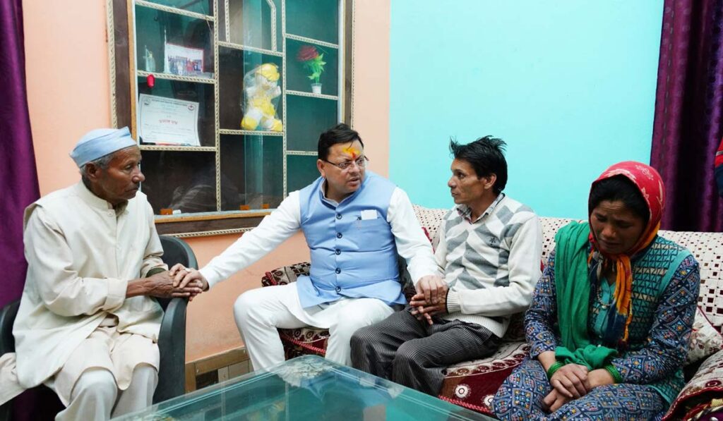 मुख्यमंत्री ने हिमांशु नेगी के पिताजी श्री नरेन्द्र सिंह, उनके दादाजी, माताजी और पत्नी से मुलाक़ात कर कहा कि धैर्य बना कर रखें, राज्य सरकार द्वारा प्रभावित परिवार को हर संभव सहयोग दिया जायेगा।इस अवसर पर विधायक श्री भूपाल राम टम्टा और जिलाधिकारी चमोली श्री हिमांशु खुराना मौजूद थे।