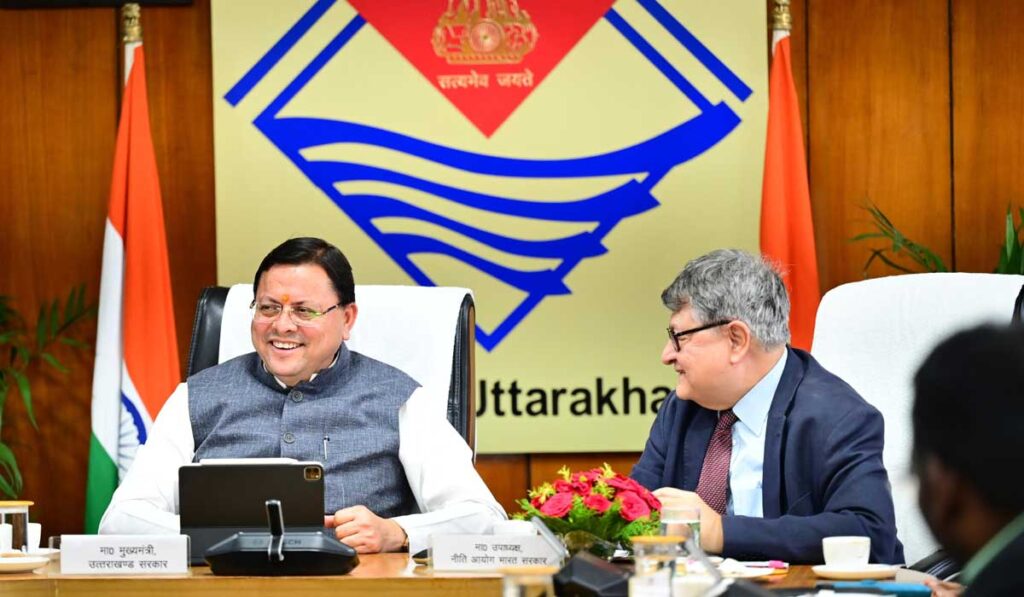 देहरादून : मुख्यमंत्री श्री पुष्कर सिंह धामी ने शनिवार को सचिवालय में नीति आयोग के उपाध्यक्ष श्री सुमन बेरी के साथ राज्य से जुड़े अहम विषयों पर बैठक की। मुख्यमंत्री ने नीति आयोग के उपाध्यक्ष का देवभूमि उत्तराखण्ड में स्वागत किया।मुख्यमंत्री ने बैठक के दौरान कहा कि उत्तराखण्ड विषम भौगोलिक परिस्थितियों वाला राज्य है। राज्य में पर्वतीय, मैदानी, भाबर और तराई क्षेत्र हैं। उन्होंने कहा कि राज्य में आपदा, वनाग्नि, पलायन और फ्लोटिंग जनसंख्या बड़ी चुनौती है। दो देशों की अन्तरराष्ट्रीय सीमाओं से लगे होने के कारण उत्तराखण्ड सामरिक दृष्टि से महत्वपूर्ण राज्य है। उन्होंने नीति आयोग के उपाध्यक्ष से अनुरोध किया कि हिमालयी राज्यों की भौगोलिक परिस्थितियों को ध्यान में रखते हुए नीतियों का निर्धारण किया जाए। उन्होंने पर्वतीय क्षेत्रों के लोगों की आजीविका में वृद्धि के लिए विशेष नीति बनाने का अनुरोध भी किया। इससे पर्वतीय क्षेत्रों से पलायन जैसी बड़ी समस्या का समाधान होगा।