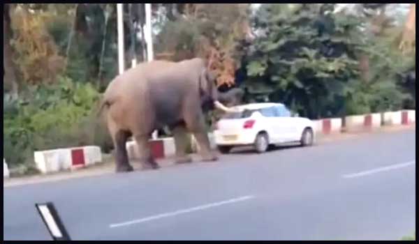 डोईवाला (देहरादून)- बुधवार की साँय लगभग 4:00 बजे जॉली ग्रांट एयरपोर्ट के पास जंगल से निकलकर हाथी रोड पर आ गया और रोड पर खड़ी प्राइवेट स्विफ्ट कार को पलटने की कोशिश करने लगा गनीमत रही की कार में कोई मौजूद नहीं था.