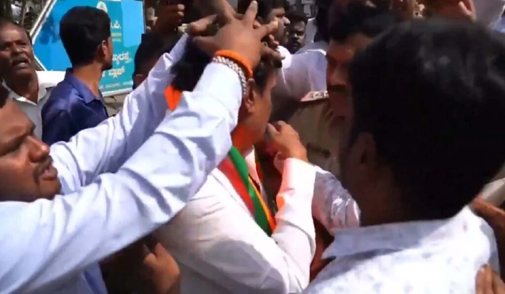 बलात्कार के एक मामले में जमानत पर रिहा हुए बेंगलुरु के आरआर नगर विधायक मुनिरत्ना पर बुधवार को अंडे फेंके गए। यह घटना तब सामने आई जब मुनिरत्ना लग्गेरे में पूर्व प्रधान मंत्री स्वर्गीय अटल बिहारी वाजपेयी की जयंती के अवसर पर एक कार्यक्रम में भाग ले रहे थे और कुछ बदमाशों ने उन पर अंडों से हमला कर दिया। घटना के सुर्खियों में आने के बाद बीजेपी ने कांग्रेस कार्यकर्ताओं पर विधायक पर अंडे फेंकने का आरोप लगाया है।
