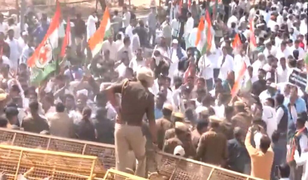 जयपुर: इंदिरा गांधी के संबंध में भाजपा मंत्री के बयान के बाद पार्टी के छह विधायकों को निलंबित किए जाने के बाद कांग्रेस कार्यकर्ताओं ने राजस्थान विधानसभा के बाहर बड़े पैमाने पर विरोध प्रदर्शन किया। पुलिस ने बैरिकेड्स लगा दिए हैं और सुरक्षा बढ़ा दी है। कांग्रेस कार्यकर्ता विधानसभा को घेरने की कोशिश कर रहे हैं, जिसके चलते पुलिस के साथ उनकी झड़प हुई है। सामाजिक न्याय एवं अधिकारिता मंत्री अविनाश गहलोत द्वारा शुक्रवार को विधानसभा में विपक्षी बेंच की ओर इशारा करते हुए ‘आपकी दादी’ टिप्पणी के बाद विपक्ष भड़क गया।
