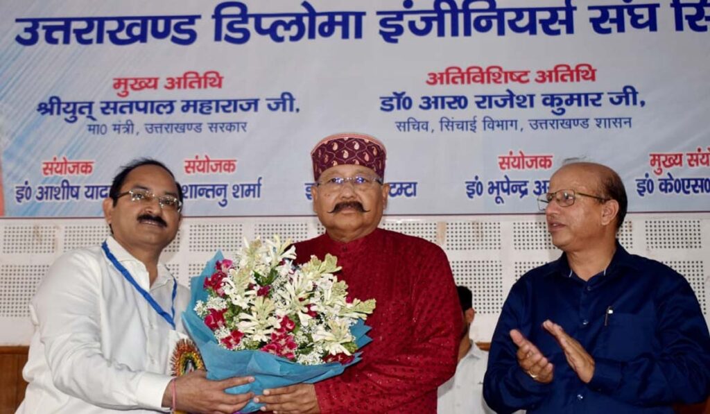 देहरादून : उत्तराखण्ड डिप्लोमा इंजीनियर्स संघ सिंचाई विभाग द्वारा जो मांग पत्र प्रस्तुत किया गया है उन सभी न्यायोचित समस्याओं पर गंभीरता से विचार कर समाधान करने का प्रयास किया जायेगा।उक्त बात प्रदेश के सिंचाई मंत्री सतपाल महाराज ने यमुना कालोनी स्थित अधिकारी क्लब में उत्तराखण्ड डिप्लोमा इंजीनियर्स संघ सिंचाई विभाग के त्रयोदश महाधिवेशन -2025 के समापन अवसर पर संघ के सभी सदस्यों एवं पदाधिकारियों को महाधिवेशन के अनुशासित, भव्य एवं सफल आयोजन हेतु अपनी बधाई और शुभकामनाएं देते हुए कही।