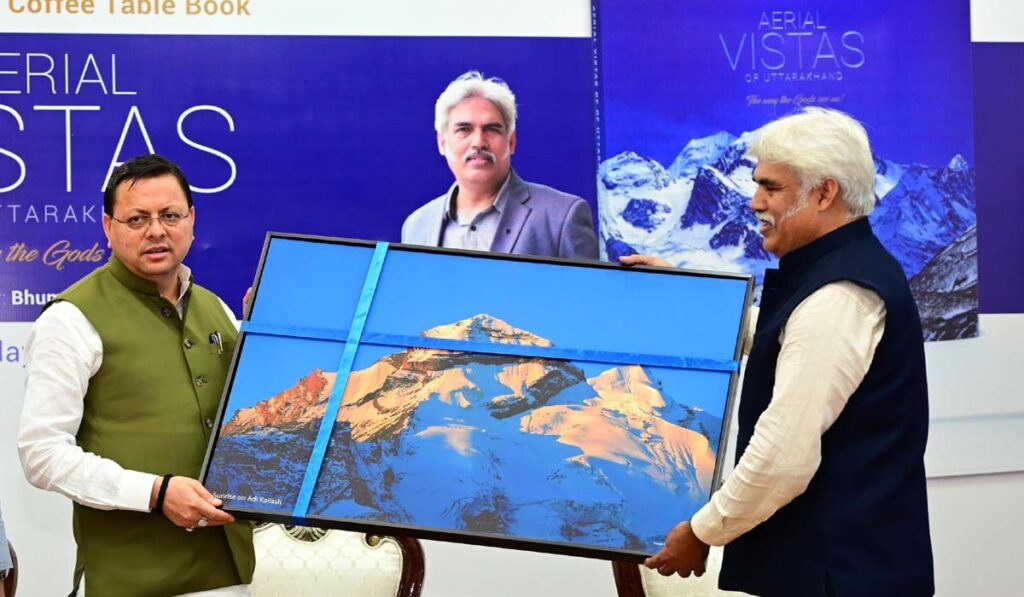 मुख्यमंत्री श्री पुष्कर सिंह धामी ने मुख्यमंत्री आवास में फोटोग्राफर श्री भूमेश भारती की कॉफी टेबल बुक “एरियल विस्टाज़ ऑफ उत्तराखंड” का विमोचन किया।
