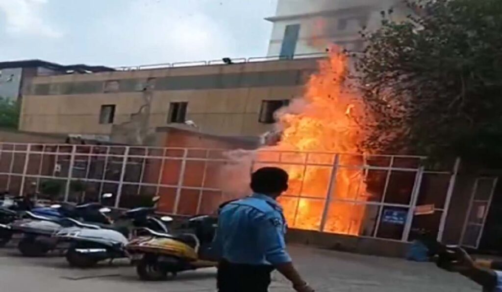 #WATCH | An electric transformer caught fire at AIIMS Trauma Centre in New Delhi. A total of 8 fire engines reached the spot, and the fire was extinguished. No injury reported.