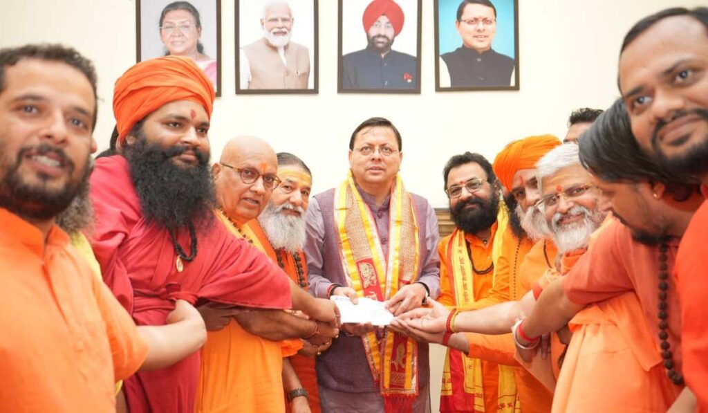 देहरादून : मुख्यमंत्री पुष्कर सिंह धामी से डामकोठी, हरिद्वार में अखाड़ा परिषद के प्रतिनिधिमंडल ने शिष्टाचार भेंट की। इस अवसर पर परिषद की ओर से उत्तराखंड में हाल ही में आई प्राकृतिक आपदा से प्रभावित क्षेत्रों के पुनर्निर्माण के लिए मुख्यमंत्री राहत कोष में ₹34 लाख की सहयोग राशि प्रदान की गई। इसके साथ ही परिषद ने एक आपदा प्रभावित गांव को गोद लेने का संकल्प भी लिया। मुख्यमंत्री ने इसे सेवा और संवेदना का अनुकरणीय उदाहरण बताया और साधु-संत समाज के इस प्रयास की सराहना की।