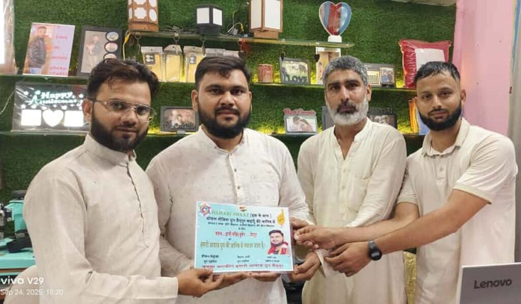 सैदपुर : बुधवार को अचानक बस्ती में अफरा-तफरी का माहौल बन गया था, जिससे लोगों में तनाव और बेचैनी की स्थिति उत्पन्न हो गई। दो घंटे तक क्षेत्र में सन्नाटा और खौफ का माहौल रहा। इसी दौरान हाजी नाहिद हुसैन ने पहल करते हुए बरेली के मरकज से संपर्क साधा। वहां से जिला मुख्यालय पुलिस को फोन गया, जिसके बाद हालात संभलने लगे। स्थिति को सामान्य करने के लिए हाजी नाहिद हुसैन ने अपनी तरफ से एक पोस्ट भी डाली, जिससे बस्ती का माहौल खुशगवार बन गया और “I LOVE MUHAMMAD” के बैनर लगाने वालों का डर भी दूर हो गया।