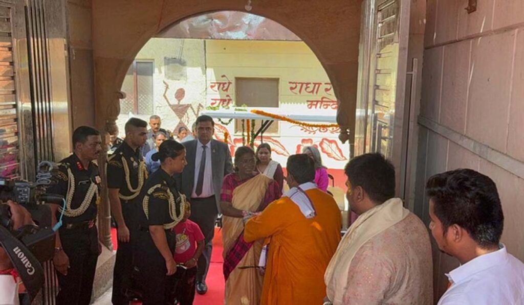 वृंदावन : राष्ट्रपति द्रौपदी मुर्मू ने आज सुबह श्रीबांके बिहारी मंदिर के दर्शन किए। उन्होंने अपने परिवार के साथ बांके बिहारी मंदिर पहुंचकर करीब 30 मिनट तक देहरी पूजन और आरती में हिस्सा लिया। इस दौरान उनकी बेटी, दामाद और पोते-पोती भी मौजूद रहे। राष्ट्रपति ने दर्शन के बाद कहा कि बांके बिहारी के दर्शन कर वे धन्य हो गई हैं।
