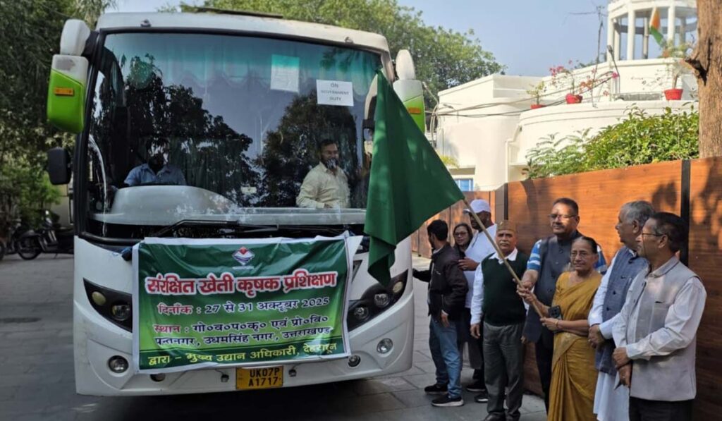 देहरादून : जनपद देहरादून के 28 प्रगतिशील सब्जी उत्पादक कृषकों का एक समूह सोमवार को गोविन्द बल्लभ पंत कृषि एवं प्रौद्योगिकी विश्वविद्यालय, पंतनगर के लिए रवाना हुआ। इन कृषकों को प्रदेश के कृषि एवं उद्यान मंत्री गणेश जोशी ने पांच दिवसीय संरक्षित खेती पर प्रशिक्षण के लिए बस को हरी झंडी दिखाकर रवाना किया। यह प्रशिक्षण कार्यक्रम कृषकों को आधुनिक तकनीकों से परिचित कराने और पॉलीहाउस खेती के माध्यम से आय में वृद्धि के उद्देश्य से आयोजित किया गया है।