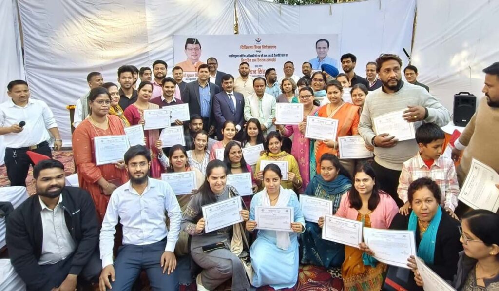 देहरादून : चिकित्सा शिक्षा विभाग के अंतर्गत राज्य चिकित्सा सेवा चयन बोर्ड के माध्यम से चयनित 28 नर्सिंग अधिकारियों एवं 14 सीएमएसडी टैक्नीशियन को प्रदेश के चिकित्सा स्वास्थ्य एवं चिकित्सा शिक्षा मंत्री डॉ. धन सिंह रावत ने आज नियुक्ति पत्र वितरित किये। इसके अलावा उन्होंने एसोसिएट प्रोफेसर व प्रोफेसर (नर्सिंग) के सात अभ्यर्थियों को भी नियुक्ति पत्र बांटे। डॉ. रावत ने कार्यक्रम के दौरान राजकीय स्टेट कॉलेज ऑफ नर्सिंग में रूपये 456.15 लाख की लागत से तैयार व्याख्यान कक्षों एवं लैब का भी लोकार्पण किया।