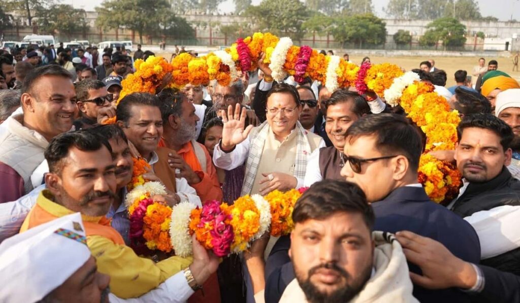हरिद्वार/देहरादून : हरिद्वार में गुरुकुल कांगड़ी हेलिपैड पर आज किसानों ने मुख्यमंत्री श्री पुष्कर सिंह धामी का उत्साहजनक स्वागत किया। किसानों, जनप्रतिनिधियों तथा स्थानीय अधिकारियों ने फूलों की माला पहनाकर, पुष्पवर्षा कर और गन्ना भेंट कर मुख्यमंत्री का अभिनंदन किया। उपस्थित किसानों ने सम्मान स्वरूप उन्हें “किसान पुत्र” की उपाधि से सम्मानित भी किया।