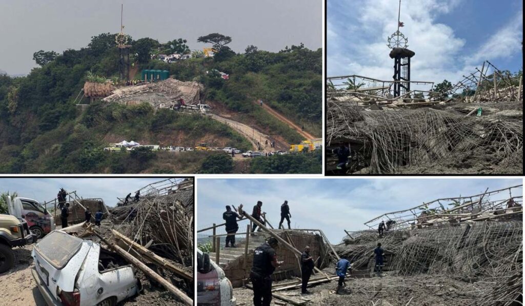 दक्षिण अफ्रीका के क्वाज़ुलू-नटाल प्रांत में डरबन के उत्तर में स्थित भारतीय बहुल इलाके रेडक्लिफ में एक दर्दनाक हादसे ने पूरे क्षेत्र को स्तब्ध कर दिया। यहां निर्माणाधीन चार मंजिला मंदिर का ढांचा अचानक भरभराकर ढह गया, जिससे मौके पर अफरा-तफरी मच गई। हादसे में दो लोगों की मौत की पुष्टि हुई है, जबकि कई लोगों के मलबे में दबे होने की आशंका बनी हुई है। कठिन भौगोलिक परिस्थितियों और रात के अंधेरे के चलते बचावकर्मियों को शुक्रवार आधी रात के करीब रेस्क्यू अभियान रोकना पड़ा, जिसे शनिवार को दोबारा शुरू किया जाएगा।