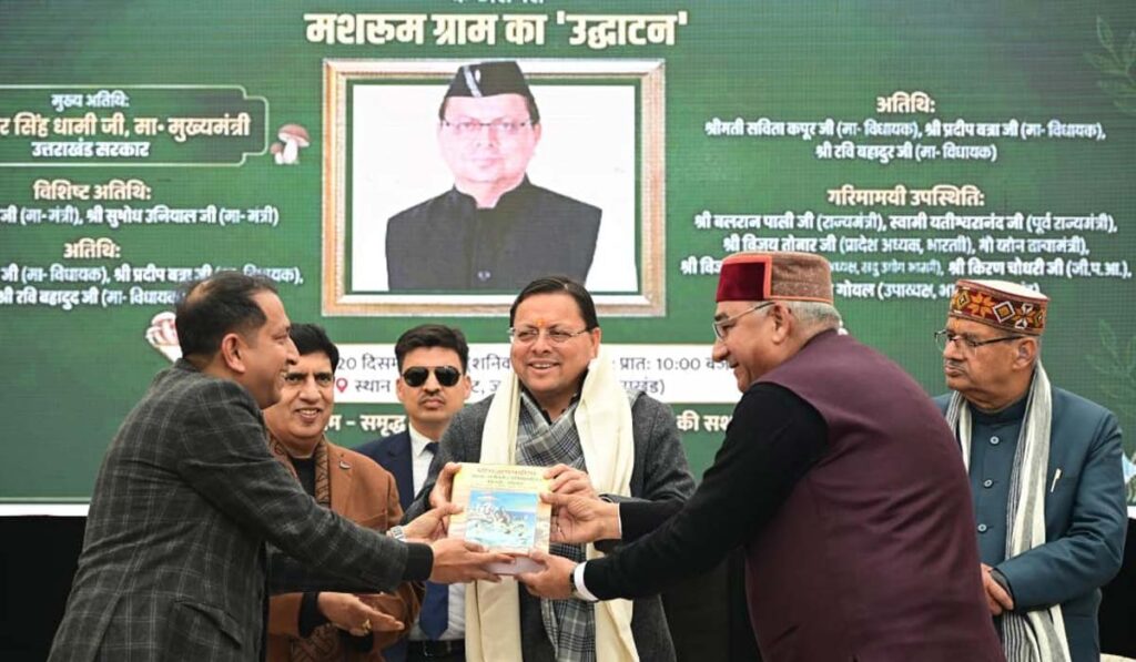 देहरादून : मुख्यमंत्री श्री पुष्कर सिंह धामी ने हरिद्वार जनपद के बुग्गावाला में एमबी फूड्स द्वारा विकसित ‘मशरूम ग्राम’ का शुभारंभ किया। इस अवसर पर उन्होंने कहा कि यह पहल किसानों की आय बढ़ाने, ग्रामीण अर्थव्यवस्था को सशक्त करने और कृषि क्षेत्र में नवाचार को प्रोत्साहित करने की दिशा में एक महत्वपूर्ण कदम है। मुख्यमंत्री ने एमबी फूड्स की टीम के प्रयासों की सराहना करते हुए कहा कि मशरूम उत्पादन कम भूमि, कम जल और कम समय में अधिक लाभ देने वाला प्रभावी उद्यम है, जिससे किसान अतिरिक्त आय अर्जित कर सकते हैं।