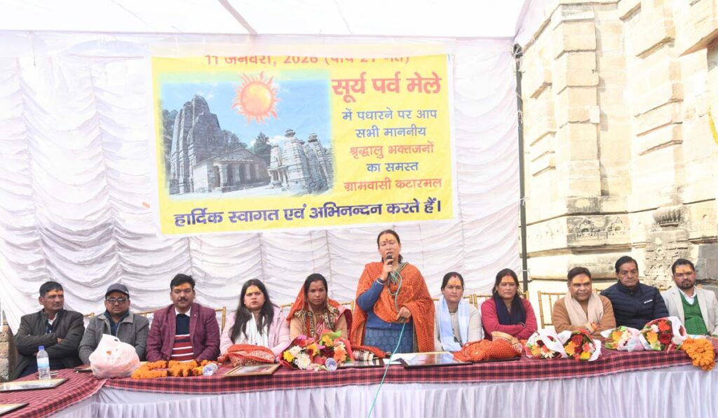 कटारमल/अल्मोड़ा : कैबिनेट मंत्री रेखा आर्या ने रविवार को अल्मोड़ा के कटारमल स्थित ऐतिहासिक सूर्य मंदिर में आयोजित सूर्य पर्व मेले में हिस्सा लिया। यह आयोजन पौष माह के अंतिम रविवार को प्रतिवर्ष किया जाता है।