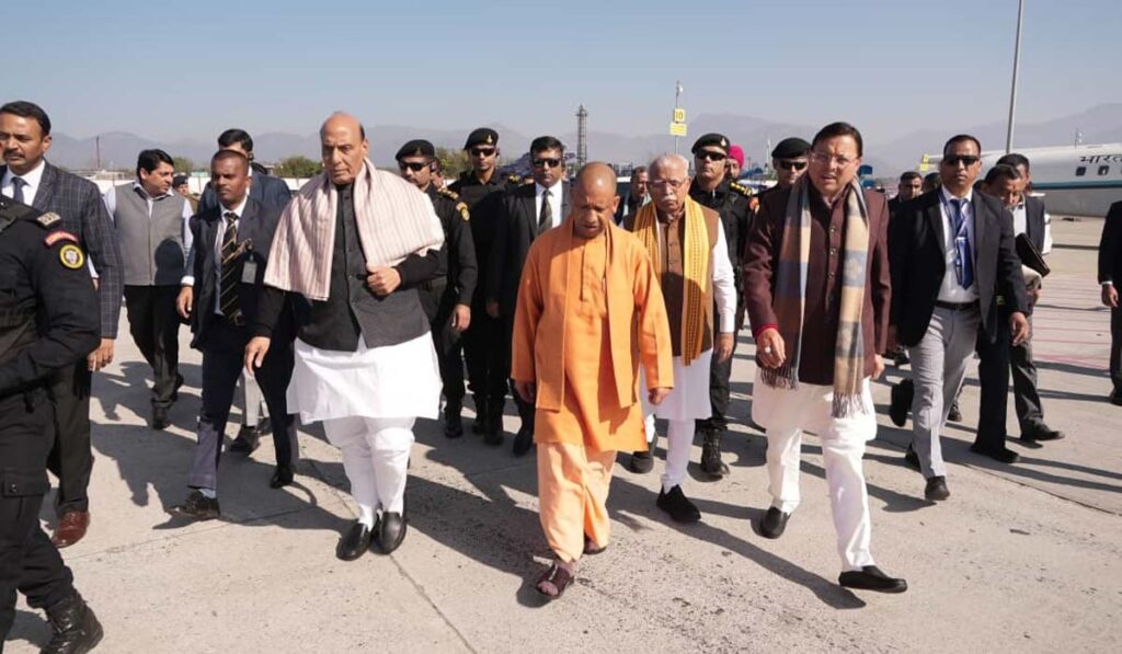 देहरादून: मुख्यमंत्री श्री पुष्कर सिंह धामी ने उत्तराखंड आगमन पर जौलीग्रांट एयरपोर्ट पर केंद्रीय रक्षा मंत्री श्री राजनाथ सिंह, केंद्रीय मंत्री श्री मनोहर लाल खट्टर एवं उत्तर प्रदेश के मुख्यमंत्री श्री योगी आदित्यनाथ का गर्मजोशी से स्वागत एवं अभिनंदन किया। इस अवसर पर मुख्यमंत्री ने पुष्पगुच्छ भेंट कर सभी विशिष्ट अतिथियों का पारंपरिक तरीके से स्वागत किया और राज्य में उनके आगमन को महत्वपूर्ण बताया। एयरपोर्ट परिसर में स्वागत की पूरी व्यवस्था की गई थी, जहां प्रशासनिक अधिकारियों एवं जनप्रतिनिधियों की भी उपस्थिति रही।