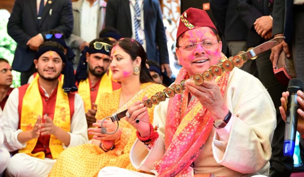 मुख्यमंत्री आवास का प्रांगण सोमवार को होली के रंगों में सराबोर नजर आया। इस दौरान प्रदेश की सांस्कृतिक समृद्धि और एकता के भी दर्शन हुए। पूर्वाह्न से ही प्रदेश भर के लोक कलाकारों, संस्कृति कर्मियों की टोलियां होली गायन करते हुए, सीएम आवास पहुंचती रही। एक तरफ गढ़वाल-कुमाऊं से लेकर जौनसार तक का होली गायन था, नृत्य था। इस दौरान होली के गीत गूंजे। पारंपरिक गायन हुआ। ढोल, मंजीरे बजे। पारंपरिक वाद्य यंत्रों की संगत ने होली गीतों के प्रभाव को और बढ़ा दिया। आओ दगड़ियो, नाचा गावा, आ गई रंगीली होली का आह्वान यदि कुमांउ से आए कलाकारों ने किया, तो राठ क्षेत्र के कलाकारों ने गाया-आई डान्ड्यू बसंत, डाली मा मौल्यार।