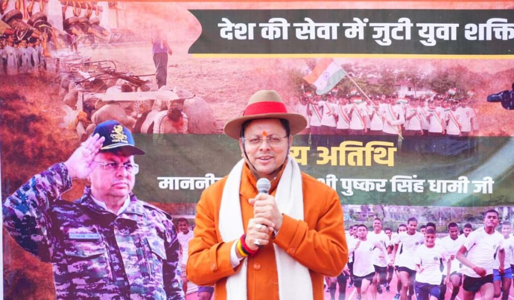 इस अवसर पर अग्निवीरों और पूर्व सैनिकों को संबोधित करते हुए मुख्यमंत्री ने कहा कि हमारे सैनिक सीमांत और उच्च हिमालयी क्षेत्रों में कठिन परिस्थितियों में देश की सेवा करते हैं। देवभूमि उत्तराखण्ड की विशेषता है कि यहां लगभग हर परिवार से कोई न कोई सदस्य सेना या अर्द्धसैन्य बलों में सेवाएं दे रहा है।