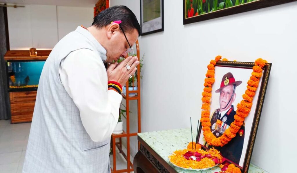 मुख्यमंत्री ने कहा कि जनरल बिपिन रावत ने अपना पूरा जीवन माँ भारती की सेवा में समर्पित कर दिया। वे अदम्य साहस, कर्तव्यनिष्ठा और राष्ट्रभक्ति के ऐसे प्रतीक थे, जिनका जीवन हर भारतीय के लिए प्रेरणा का स्रोत है। उन्होंने कहा कि सेना में रहते हुए जनरल रावत ने न केवल देश की सीमाओं की सुरक्षा को मजबूत किया, बल्कि सैन्य नेतृत्व और रणनीतिक सोच के माध्यम से भारतीय सेना को नई दिशा देने का कार्य भी किया।