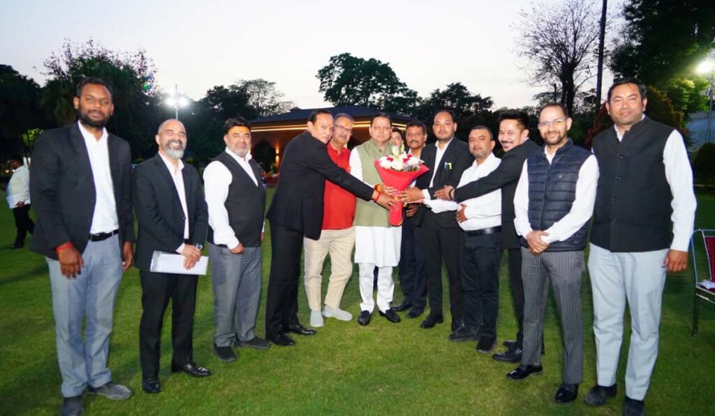 देहरादून : मुख्यमंत्री श्री पुष्कर सिंह धामी से मुख्यमंत्री आवास में बार एसोसिएशन देहरादून के अधिवक्ताओं के एक प्रतिनिधिमंडल ने शिष्टाचार भेंट की। इस अवसर पर प्रतिनिधिमंडल ने उत्तराखंड सरकार के सफलतापूर्वक चार वर्ष पूर्ण होने पर मुख्यमंत्री को शुभकामनाएं दीं एवं राज्य के समग्र विकास के लिए किए जा रहे प्रयासों की सराहना की।