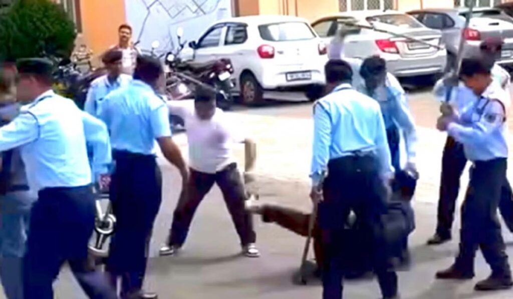देहरादून : जौलीग्रांट क्षेत्र से एक चौंकाने वाला मामला सामने आया है, जहां एक निजी संस्थान के पास सुरक्षा गार्डों द्वारा एक युवक के साथ की गई मारपीट का वीडियो सोशल मीडिया पर तेजी से फैल रहा है। वीडियो में साफ देखा जा सकता है कि एक युवक जमीन पर पड़ा हुआ है और कई गार्ड उसे लाठी-डंडों से बेरहमी से पीट रहे हैं। युवक दर्द से चिल्लाता नजर आता है, लेकिन गार्डों का गुस्सा थमता नहीं दिखता।