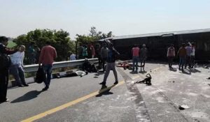 कन्नौज: जिले में आगरा.लखनऊ एक्सप्रेसवे पर लखनऊ से दिल्ली जा रही तेज रफ्तार स्लीपर बस अचानक पलट...
