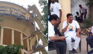 लखीमपुर खीरी: राजापुर गांव के कई किसान शहर में बिलोवी हाल के पास पानी की टंकी पर...