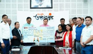 देहरादून : पिटकुल द्वारा उत्तराखण्ड शासन को लाभांश के रूप में 11 करोड़ की धनराशि का चेक...